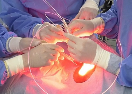 例えば、光ファイバーの側面からレーザー光を出す新規のディフューザーをわれわれは開発しました。それまでは光ファイバーの端面からしか光が出なかったため、がんの部位によっては狭い空間の中で光を斜めからしか当てられず治療が難しかったのですが、側面から垂直方向に光を出すことで、狭い中でもより適正な光の照射が可能になりました。このディフューザーも日本のメンバーがプロトタイプを作り、米Rakuten Medical社の子会社であるスイスMedlight社が量産品に仕上げました。