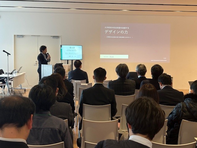 株式会社346の創業者、菅野共同代表は、大学・研究機関などで開発製品に関わったデザインの事例を紹介し、デザインを早い段階から取組むことが、研究成果を社会実装へ進める際の成功率を高める一つの鍵になる、という点についてお伝えしました。