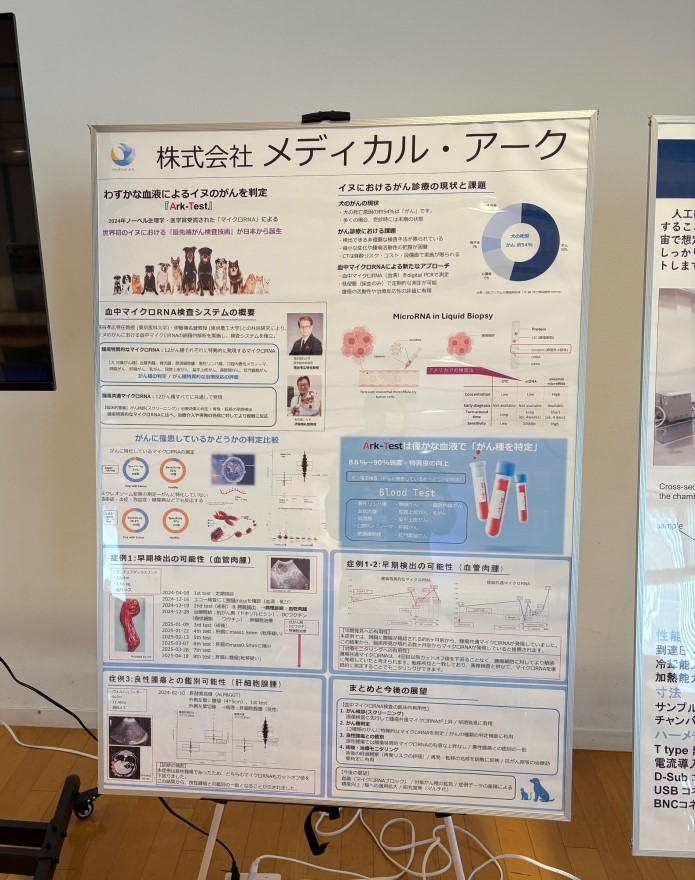 会場内では、農工大ディープテック産業開発機構が支援し社会実装等に挑戦する教員・大型研究拠点の研究活動紹介ポスターの展示などと共に、ベンチャーポート入居企業9社(株式会社NEWGREEN、株式会社コルラボ、株式会社メディカル・アーク、テクノリサーチ株式会社、株式会社346、株式会社Hakobot、アイラボ株式会社、株式会社モトックス、エアロディベロップジャパン株式会社、順不同)の紹介動画モニター、およびポスターが展示されました。
